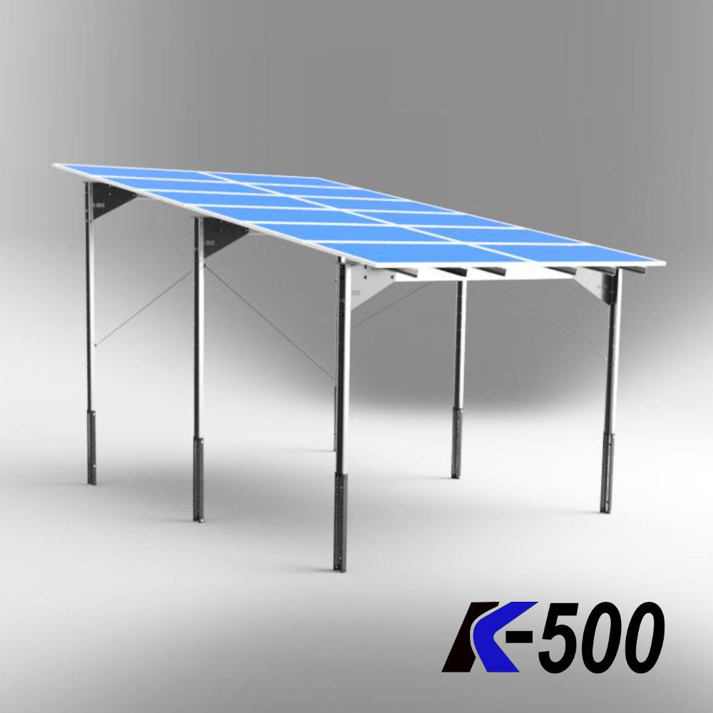 Kupując konstrukcje z K500 otrzymujesz zestaw wszystkich elementów montażowych niezbędnych do położenia określonej liczby konkretnych modułów fotowoltaicznych.
