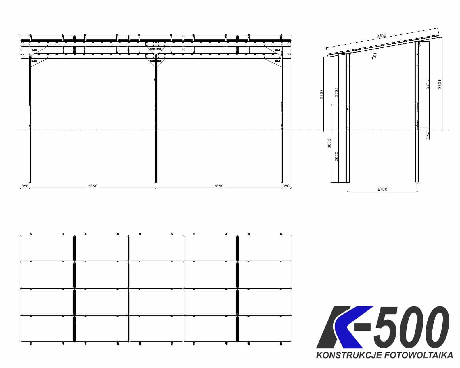 K6400 CARPORT 2×4200 (1680-1840) na 20 modułów R6