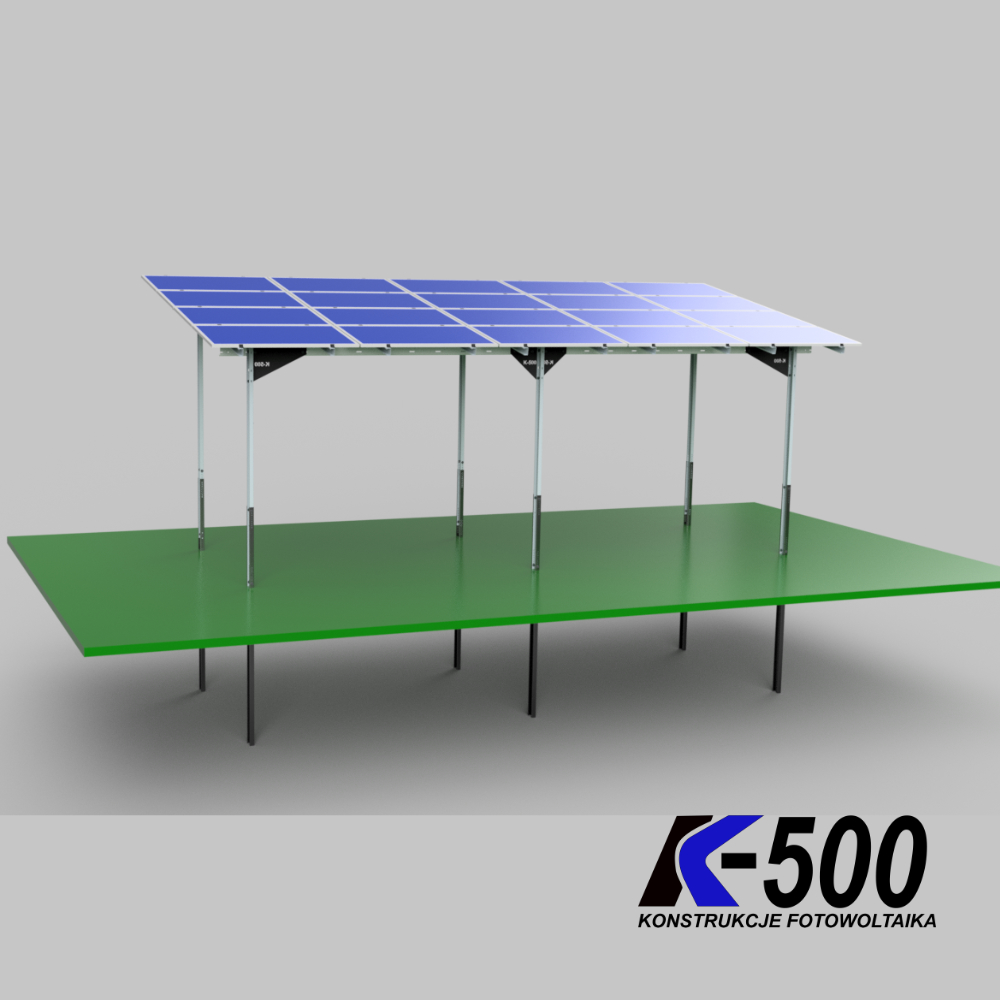 Kupując konstrukcje z K500 otrzymujesz zestaw wszystkich elementów montażowych niezbędnych do położenia określonej liczby konkretnych modułów fotowoltaicznych.
