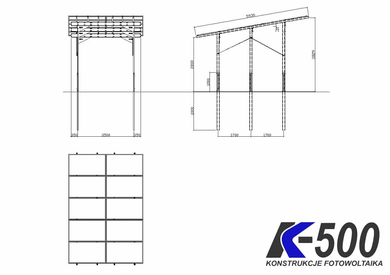 K6500 CARPORT 1×4200 (2090-2400) na 10 modułów R2
