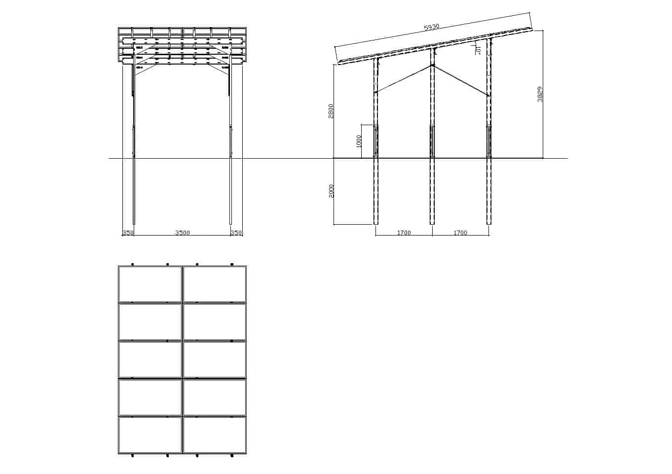 Wiata zaprojektowana zarówno dla przemysłu jak i firm, do wykorzystania w przydomowych warunkach jak i w wielkopowierzchniowych parkingach pokrytych kostką brukową lub wylanych powierzchniach asfaltowych. Instalacja Carportu jest banalnie prosta i nie niszczy istniejącej infrastruktury. Kolejną zaletą jest możliwość rozbudowy konstrukcji o dowolną ilość modułów. Funkcjonalność, trwałość, wytrzymałość czy prostota montażu to tylko niektóre zalety naszego Carportu. Wysokość konstrukcji sięgająca nawet 3,39 m (w najniższym jej punkcie) oraz rozstaw podpór równy 5,25 m pozwalają na swobodne postawienie dużych busów lub maszyn rolniczych.
