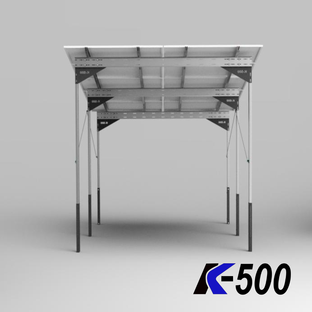 Kupując konstrukcje z K500 otrzymujesz zestaw wszystkich elementów montażowych niezbędnych do położenia określonej liczby konkretnych modułów fotowoltaicznych.