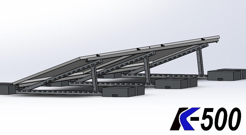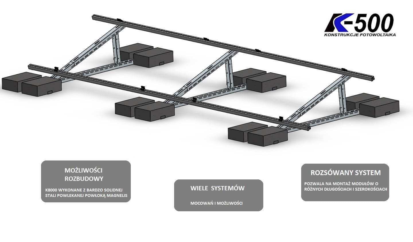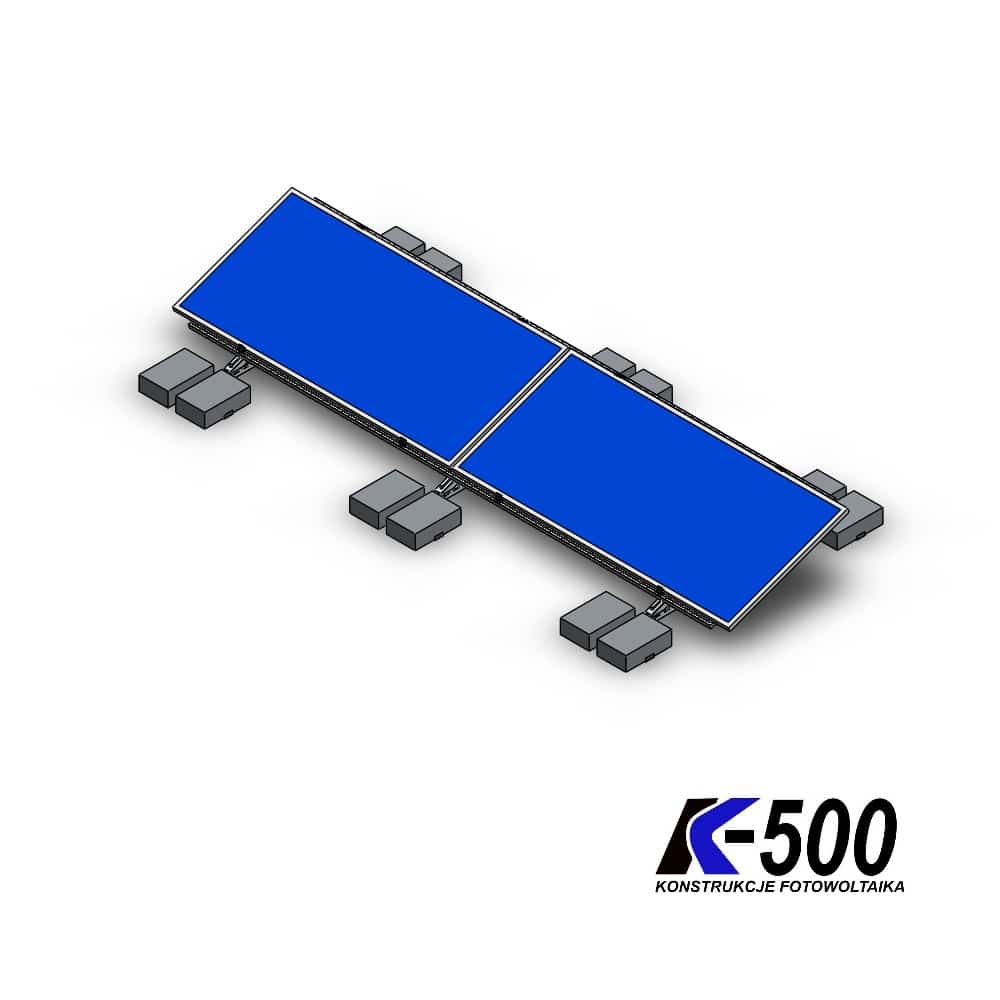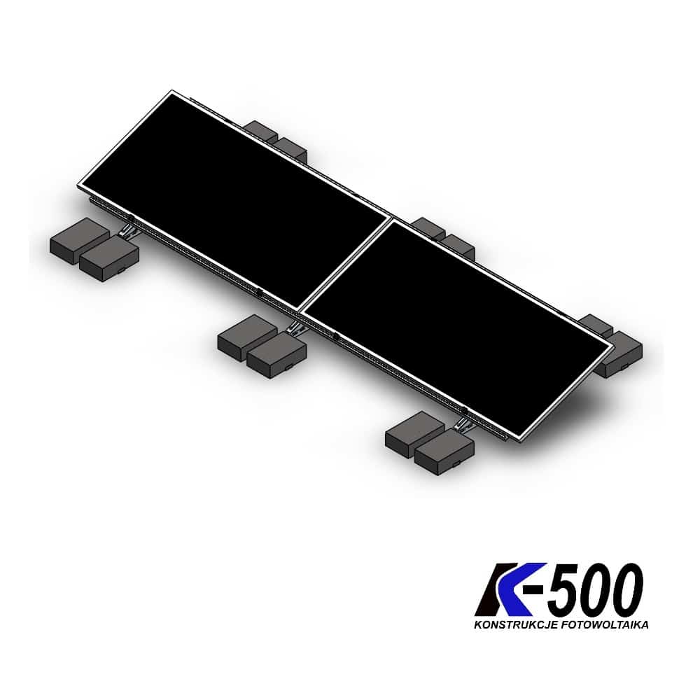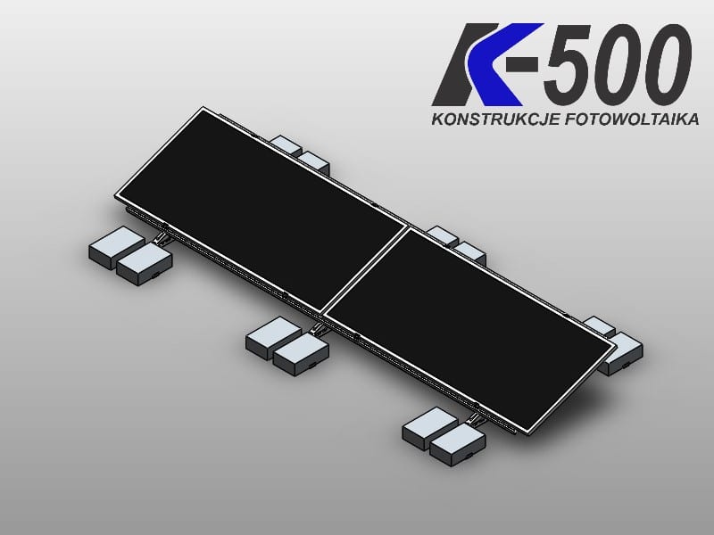 Kupując konstrukcje z K500 otrzymujesz zestaw wszystkich elementów montażowych niezbędnych do położenia określonej liczby konkretnych modułów fotowoltaicznych